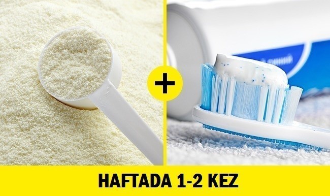 Süt tozu, dişlerin inci gibi bem beyaz hale gelmesine ve sağlıklı kalmasına yardımcı olacaktır. Diş fırçanızın üzerine biraz diş macunu sıkın, üstünde biraz süt tozu ekleyin ve dişlerinizi normal bir şekilde fırçalayın.