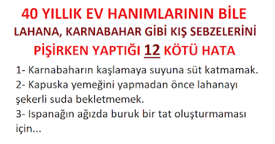 Ama tabi bu güzel kış sebzeleri ile yapacağınız yemeklerin lezzetine lezzet katan küçük püf noktaları olduğu gibi maalesef 40 yıllık ev hanımların bile gözünden kaçan, farkında olmadan ya da bilmeyerek yaptığı çok vahim hatalar da olabiliyor.